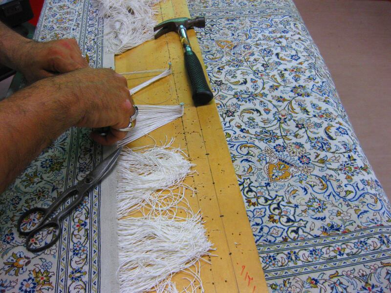 ウール絨毯にはウールで、シルク絨毯にはシルクの房を使用しますので、見た目も整い美しく仕上がります。